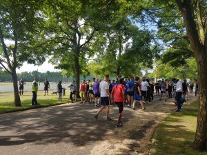 A small group this week of about 70-80 people i would say. Everyone bright and breezy and ready to go. There was a group of guys in their 50s who i think were training for a triathlon as they were dressed in their trisuits.